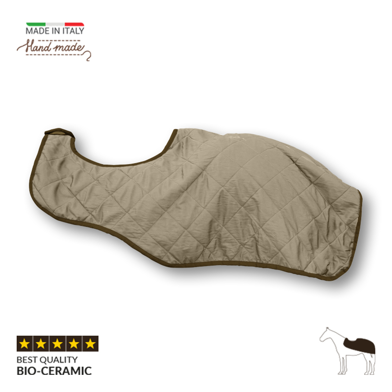Wir bieten Unterdecken aus Bio-Keramik, ideal zur Unterstützung der Thermoregulation, sowie Ausreitdecken aus 100 % Baumwolle, leicht, elegant und perfekt für jede Gelegenheit.